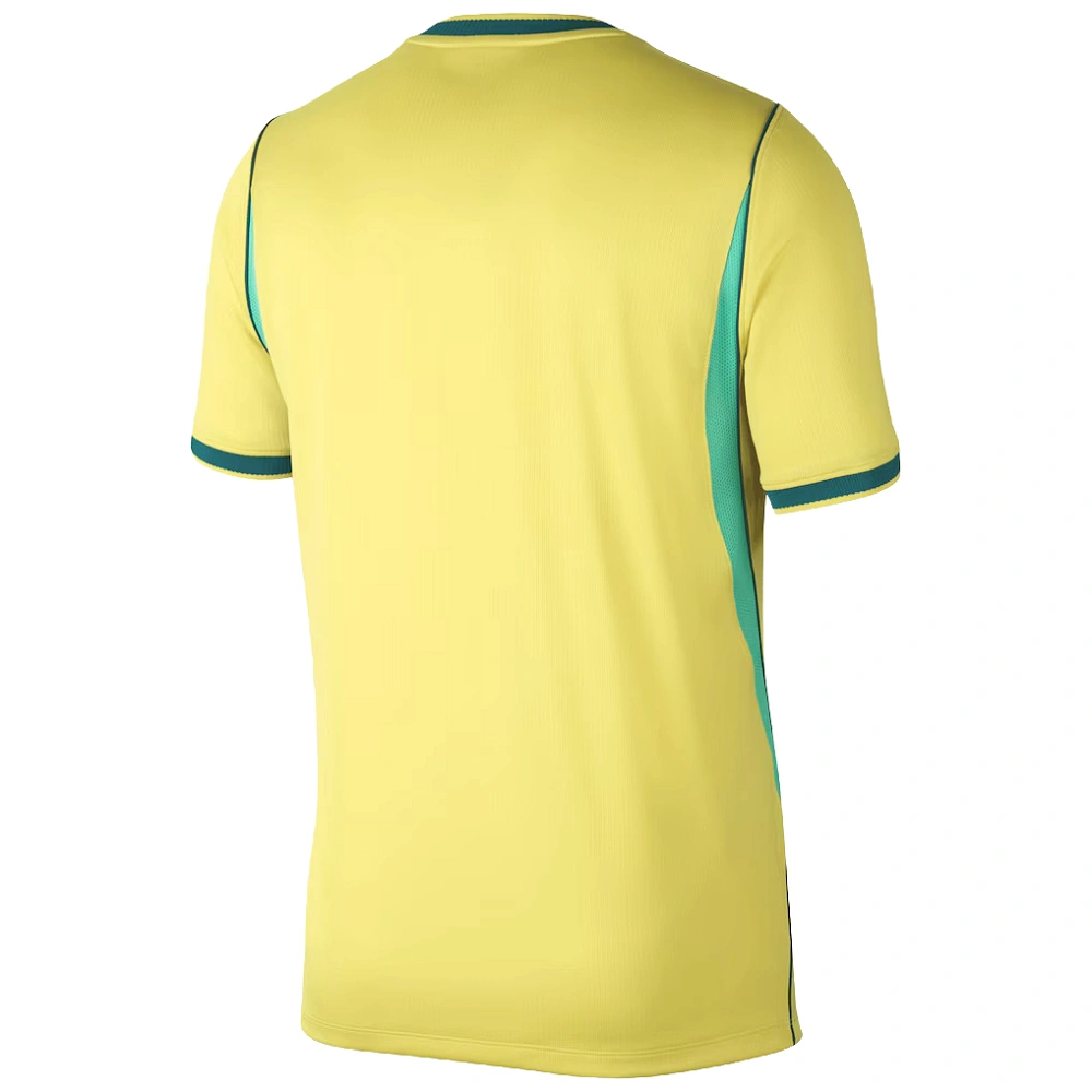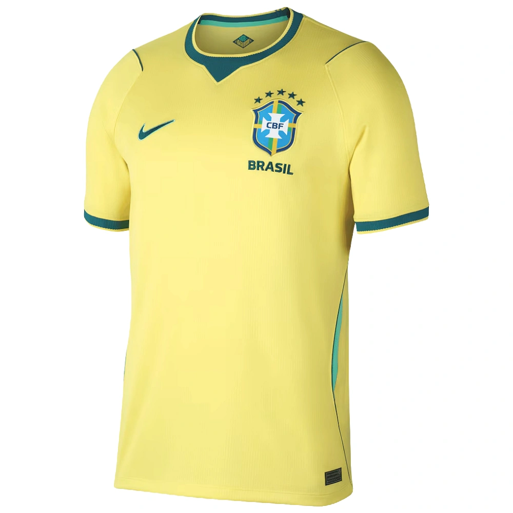 The Brazil Home Jersey 2026 features a classic yellow base with soft sky blue and dark teal details. It delivers a bold and clean look with unmistakable Brazilian identity.